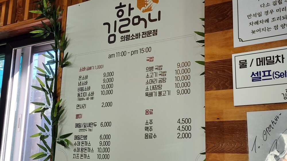가게 앞에 도착하니 여기도 손님이 제법 많았지만, 다행히 자리가 있어서 바로 들어갈 수 있었습니다. 냉소바 2개, 비빔소바 1개를 주문했어요. 솔직히 큰 기대는 안 했습니다. 앞에서 그렇게 유명하다는 의령소바집들이 줄을 서 있었으니, 여긴 덜 유명한 곳이겠거니 했죠.
